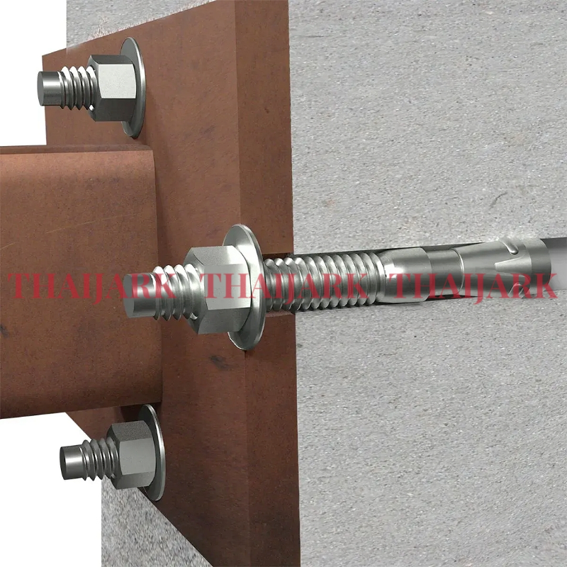 THAIJARK Rubber Dock Bumper Screw (Anchor Wedge Wall Plug) provides a secure and reliable fixing solution for installing dock bumpers, fenders, or heavy-duty rubber protection systems. Designed for strength and durability, this fastening set ensures bumpers stay firmly in place, even under repeated impact from vehicles, forklifts, or marine vessels.